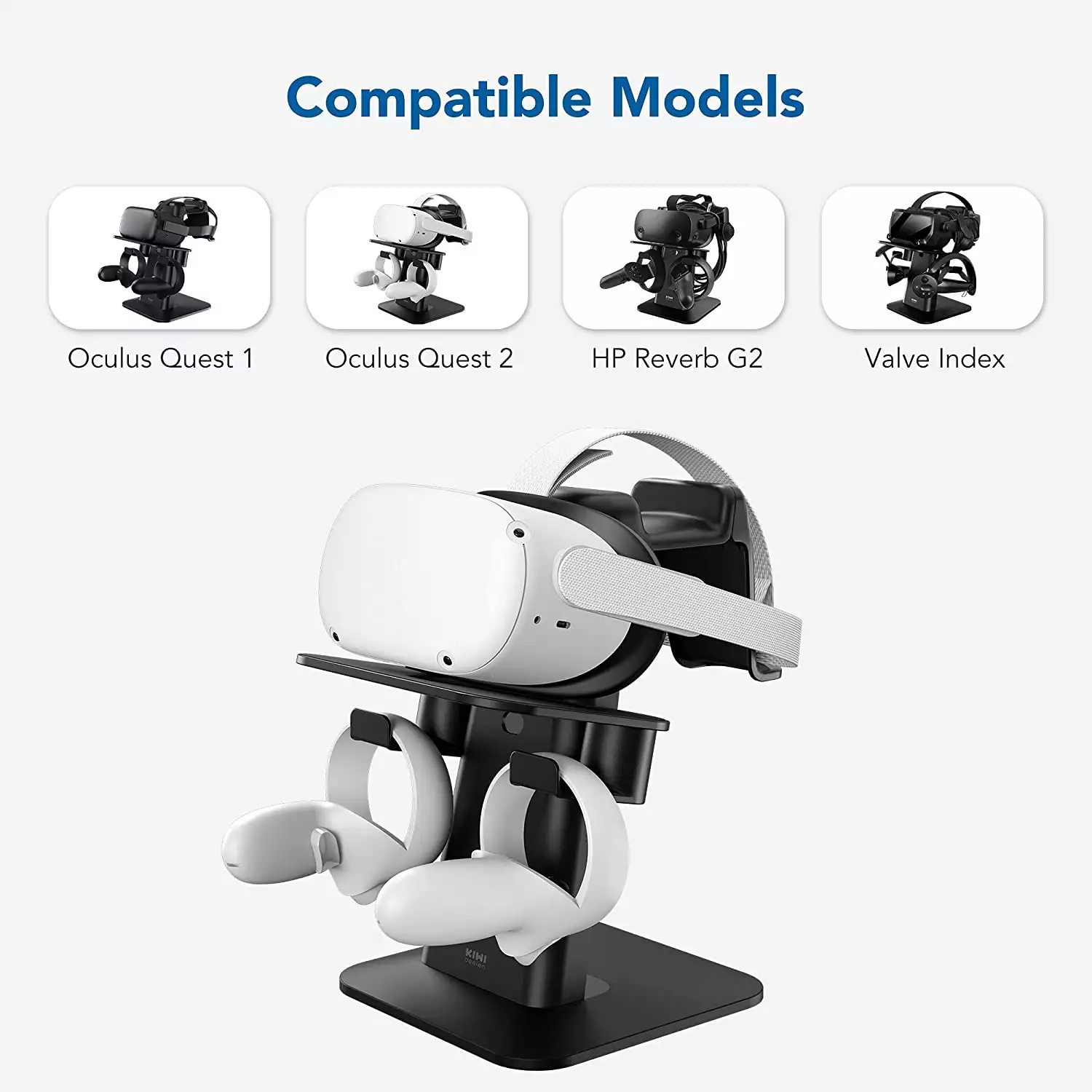 - Stabler and Safer - KIWI design Upgraded VR stand is specially designed for displaying and storing your VR headset and touch controllers. with a unique sponge non-slip design and a strong textured base, it is safer and stabler to place your VR headset strap, head-mounted display (HMD), and controllers